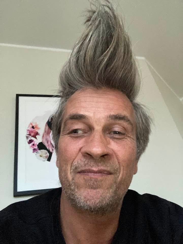That picture doesn’t tell the full truth. I did actually invent a three-pronged cellular cure for the duality disease during the pandemic: the Single, Double, and Poly Cells of Transduality. Together these Cells will create a new matrix, a new platform to stand on. Am I comparing myself to the great man himself? Why, of course not. I have much better hair, and my finely tuned sixth sense would never allow falling fruit to ruffle my mop.